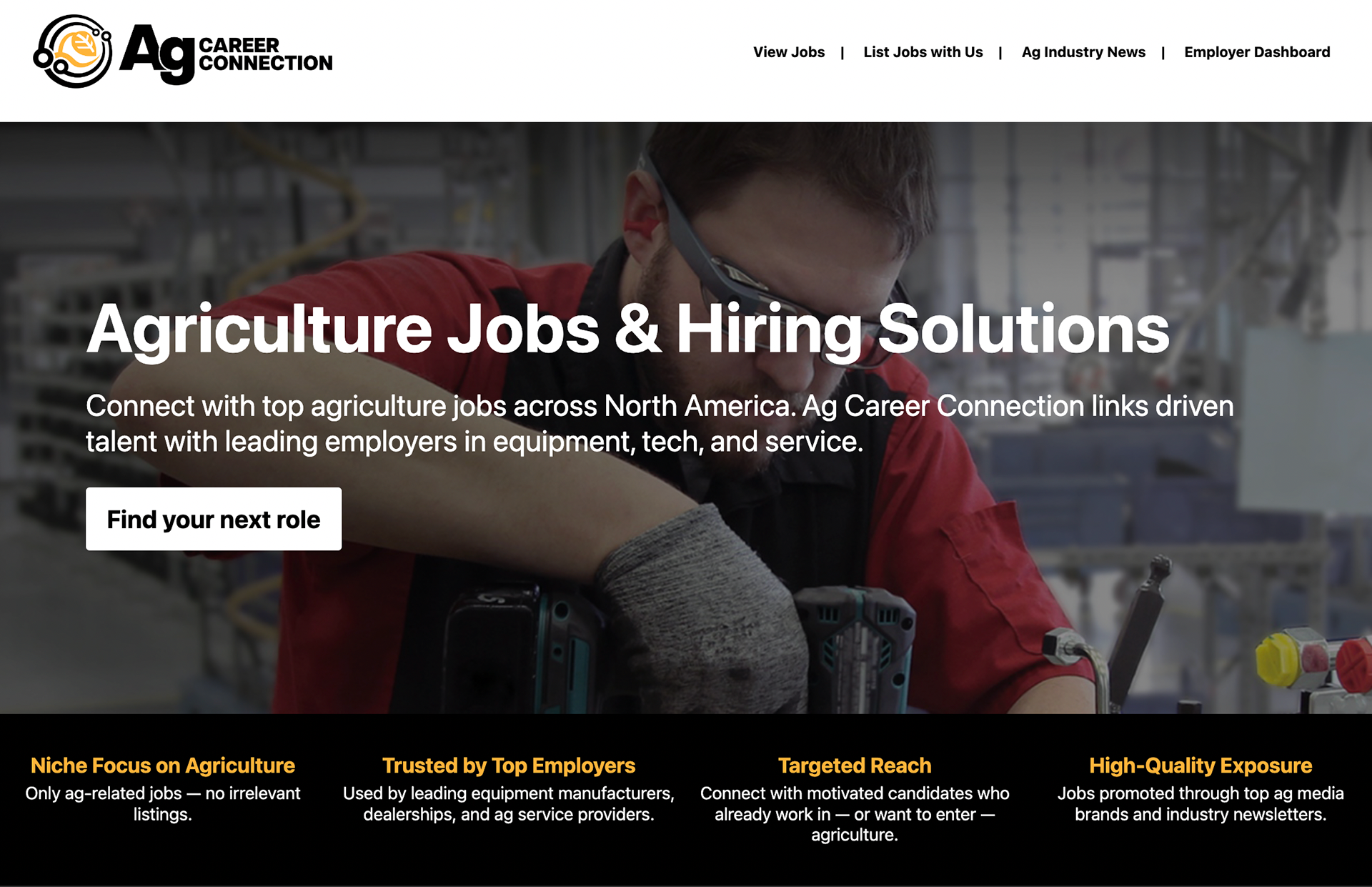 Ag Career Connection is an online platform allowing those to connect with top agriculture jobs across North America, linking driven talent with leading employers in equipment, tech, and service.